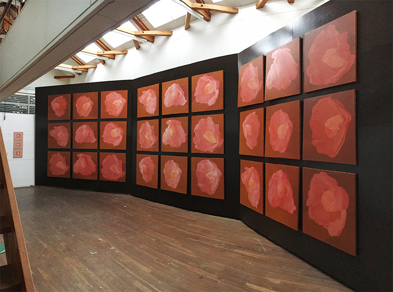 そこで、私の近作、椿の絵画作品を発表することが出来て、 たいへん幸福です。